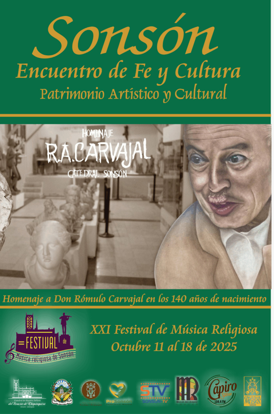 Este año, el festival rinde un emotivo homenaje a Rómulo Carvajal Quintero, con motivo de los 140 años de su nacimiento. Reconocido escultor, imaginero y pintor, Carvajal dejó una huella perdurable en la cultura religiosa de la región al instalarse en Sonsón en 1923 y abrir un taller donde creó obras icónicas como la Virgen de las Mercedes, Jesús Nazareno y Jesús Resucitado.